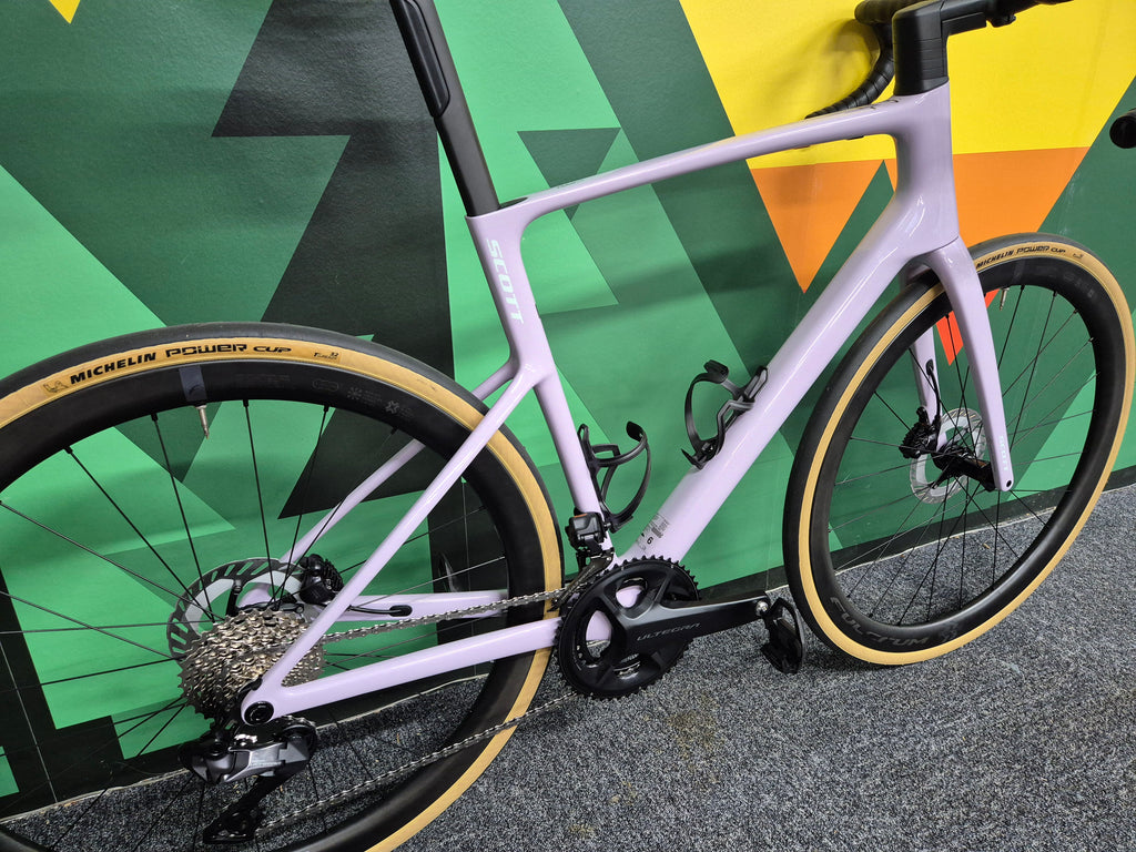 L’Addict 20 vous suivra partout où vous irez, quelle que soit votre manière d’y aller, et aussi longtemps que vous le souhaitez. Et si vous roulez trop longtemps, le kit Save-The-Day rangé dans son cadre sera là pour vous venir en aide, avec une chambre à air, un démonte-pneus et une mini pompe. L’Addict 20 est équipé de la transmission électrique Ultegra Di2 2x de milieu de gamme de Shimano, de roues à disque Fulcrum Wind 42 rapides et stables, et de pneus Schwalbe ONE, pour rouler longtemps à la vitesse de votre choix.